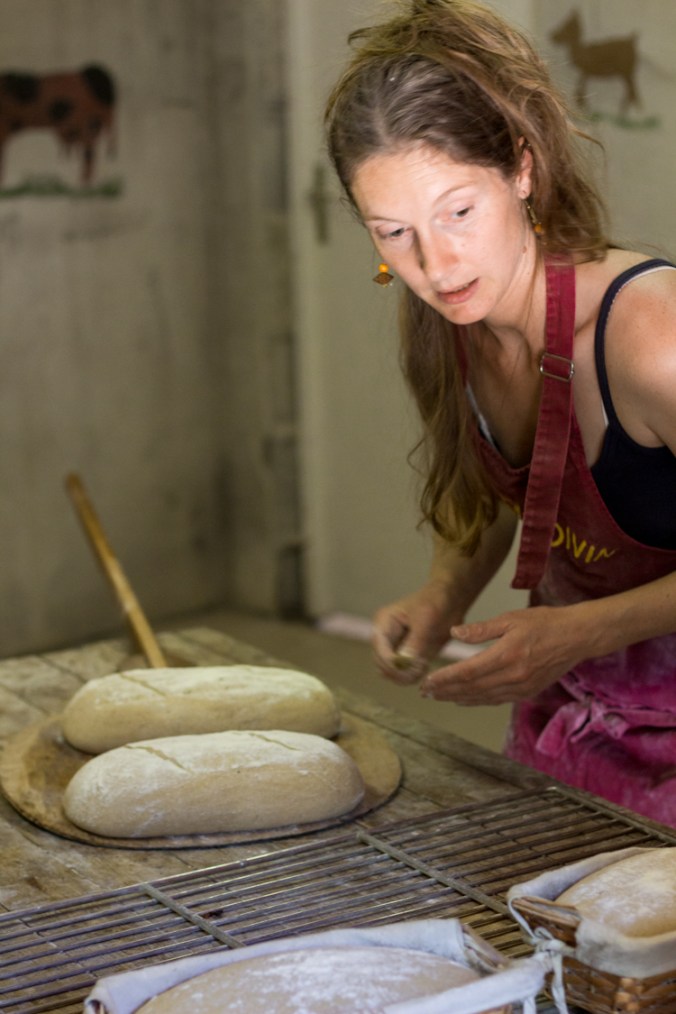 Marie a appris à faire du pain bien loin d’ici… en Bolivie alors qu’elle travaillait pour une ONG dans la recherche de financement. Déçue par le secteur de la solidarité internationale, mais tenue par l’idée de revenir à la terre, elle a envie de mettre en pratique ce qu’elle a appris là-bas et décide avec son compagnon de se former dans le sud-ouest où ils obtiennent leur certificat de spécialisation en agriculture biologique. Cette deuxième aventure dure cinq ans. Puis arrive leur bébé, une petite fille d’aujourd’hui cinq ans, une autre aventure encore. Puis l’envie de s’installer. Alors pourquoi pas vivre le rêve d’un projet d’installation collective avec une bande de copains copines ?