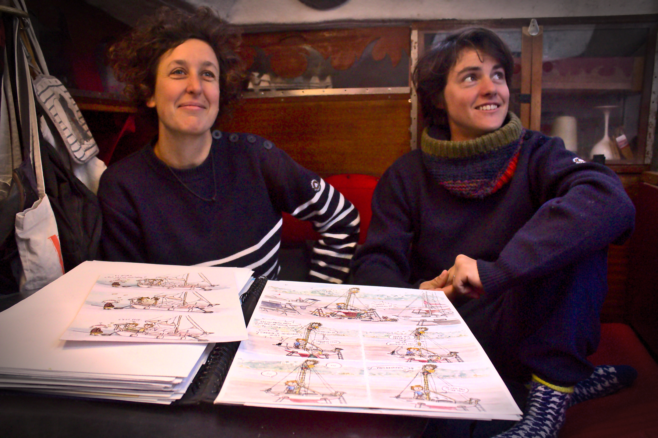 Sarah et Sophie, la trentaine et férues de grand air, ont navigué depuis Marseille, leur port d’attache, jusqu’aux îles grecques du Dodécanèse à bord de leur cher Sweety, un Sangria de 1973. Au travers de leur regard perspicace et leur fine sensibilité, les deux deux complices “à la vie comme à la mer” racontent leur périple sous forme de dessins non dénués d’humour. Sophie au tracé et Sarah à l’aquarelle. Rencontre.