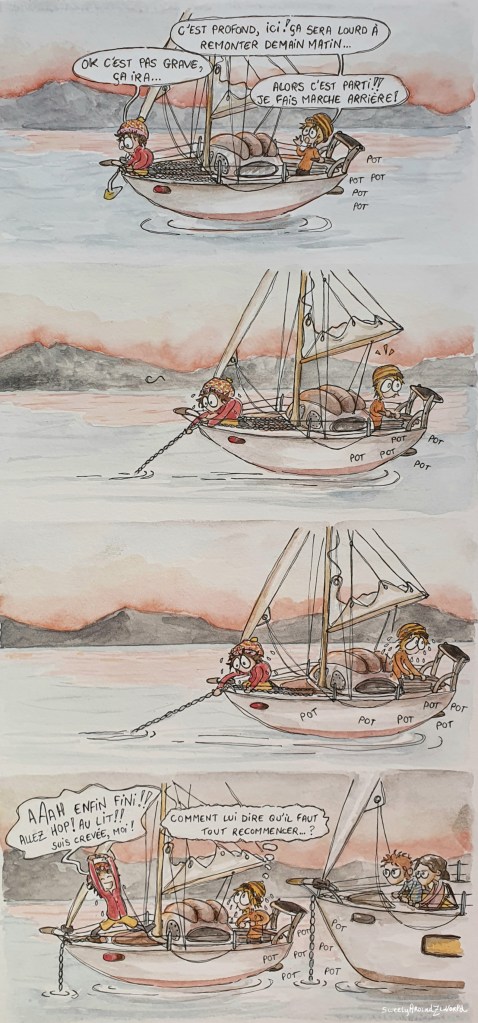 Sophie : Avec le dessin, ce qui est rigolo, c’est qu’on est obligée d’aller naviguer pour avoir des idées. Vivement la mise à l’eau !